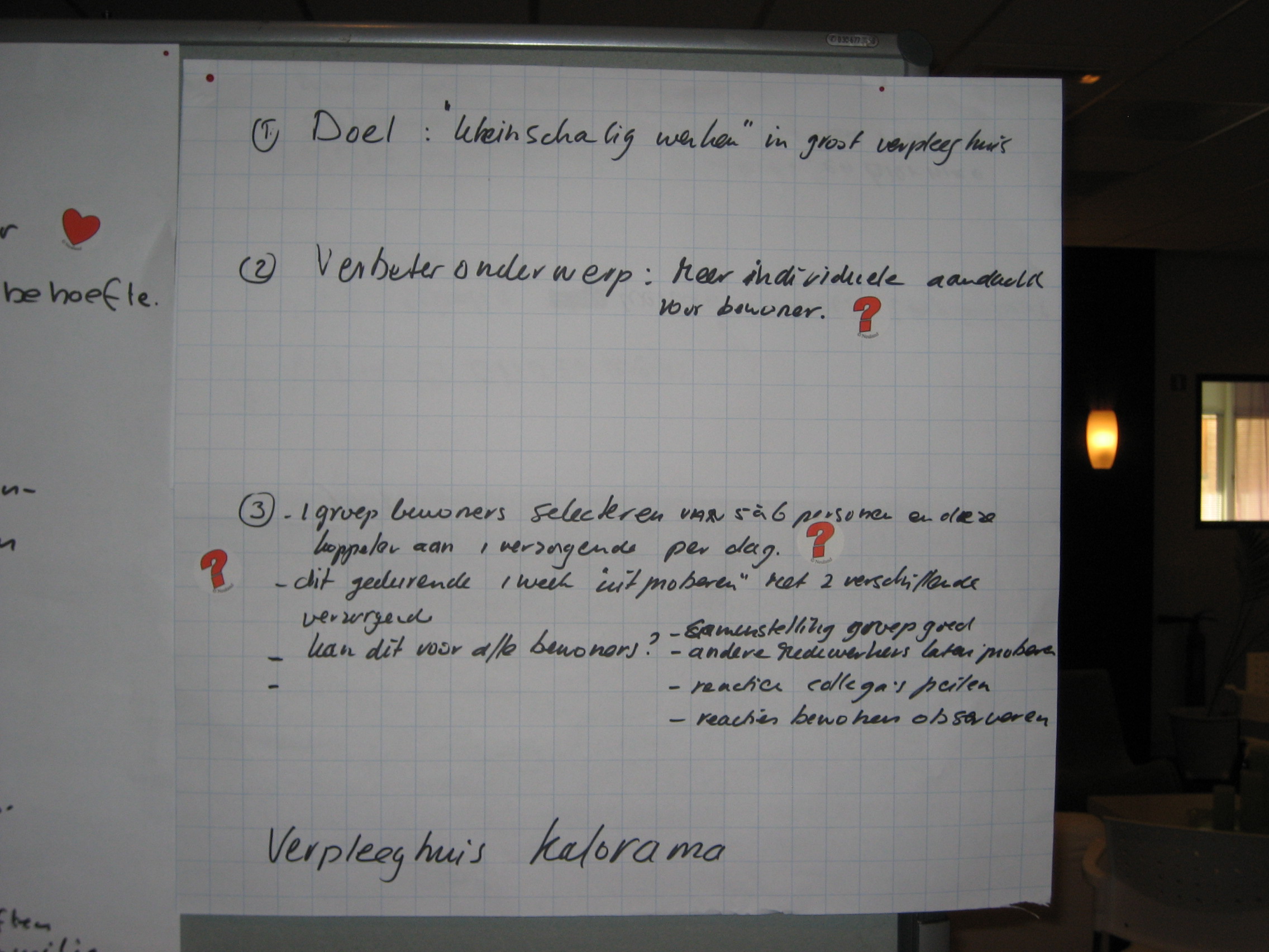 Zeggenschap voor meer kwaliteit van leven in verpleeghuizen. Het zelf kunnen bepalen hoe je leeft, woont, werkt. Voor ieder mens is dit uiteraard heel belangrijk. Het is medebepalend voor je kwaliteit van leven. Maar niet voor iedereen is het vanzelfsprekend zeggenschap te hebben over het eigen leven. (….) Om de zeggenschap te vergroten, zijn werkelijke veranderingen nodig; bij mensen zelf, bij medewerkers van instellingen en in het beleid van instellingen. Door deelname aan dit project gaat u direct aan de slag met concrete verbeteringen voor uw cliënten op korte termijn. En u begint aan een traject dat leidt tot de noodzakelijke verbeteringen en veranderingen in werkwijze, cultuur en organisatie van uw instelling. In totaal nemen verschillende teams en managers van tien verpleeghuizen in Nederland deel aan het project. Elk deelnemend team doet dat op een manier die leidt tot successen in de eigen instelling en tegelijkertijd leren we van elkaar.